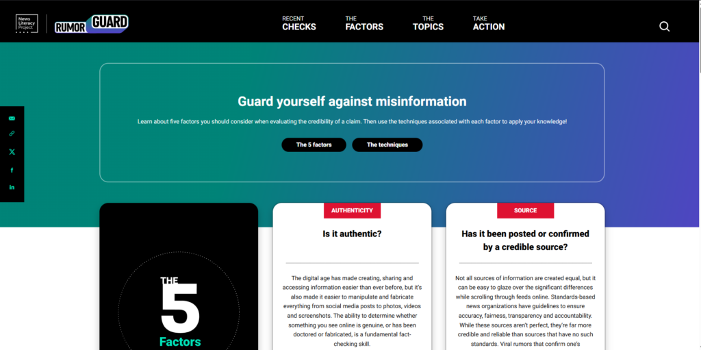 The National Literacy Project created RumorGuard in 2022 to help people learn how to spot disinformation. The website offers lessons, quizzes, and tutorials. The site was designed in a way that is accessible to people of all ages.